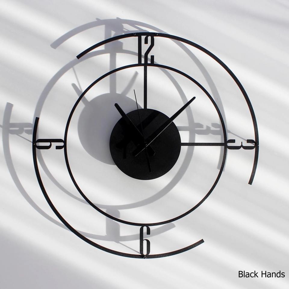 Luxury Round Black Metal Wall Clock With Artistic Detailing Perfect For Modern Homes Apartments Offices Bedrooms And Hallways