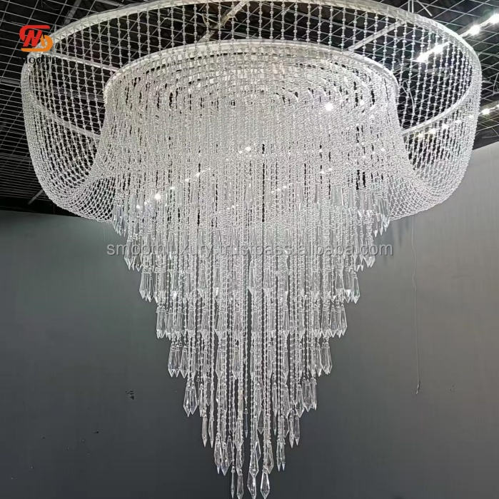 Luxury Round Circle Ceiling with Smooth Acrylic Ball Beaded Curtains Wedding Ceiling Decoration