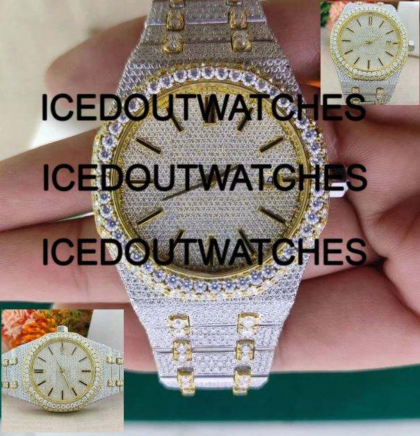 Luxury Round Dial Glass Yellow Gold Moissanite & Stainless Steel Band Watch with 10 Bar Water Resistance and Bracelet Clasp