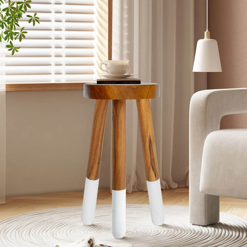 Luxury Round Dip Dyed Teak Stool for Bathroom Spa or Outdoor Decor Space Saving and Storage Feature for School or Kitchen Use