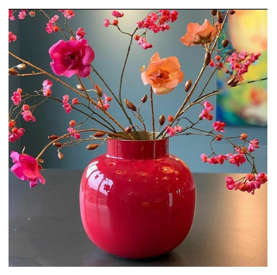 Luxury Round Glazed Green Metal Flower Vase Japanese Style Hydrangea Pot Desk Tabletop Home Decoration Tabletop LuxuryFlower Pot