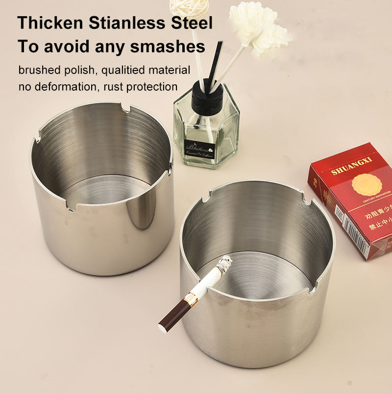 Luxury Round Golden Silver Stainless Steel Cigar Ashtray Set Customized Design for Outdoor and Home Use Durable Ashtray