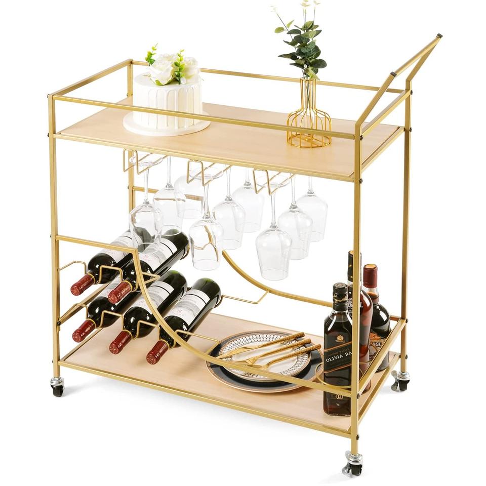 Luxury Round Metal trolley Home Decorative Food Supplies Serving Cart Hot Selling Designer Decorative Metal Trolley