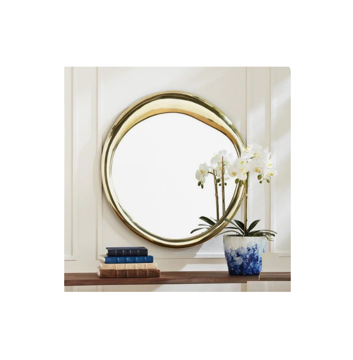 Luxury Round Washroom Mirror High-Quality Material with Gold Plated Finished Perfect for Elegant Home Decoration