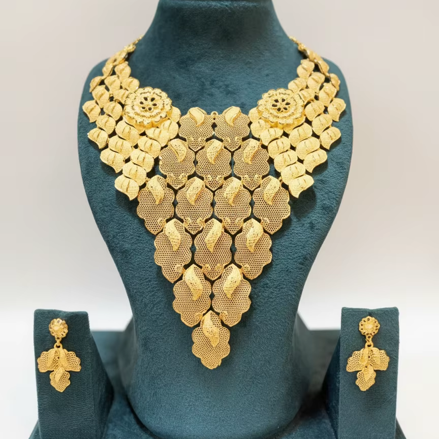 Luxury Royal Alloy Gold Filled 24K Wedding Bridal Necklace Set with Layered Tassel Pendant Matching Earrings & Ring Zircon 93061