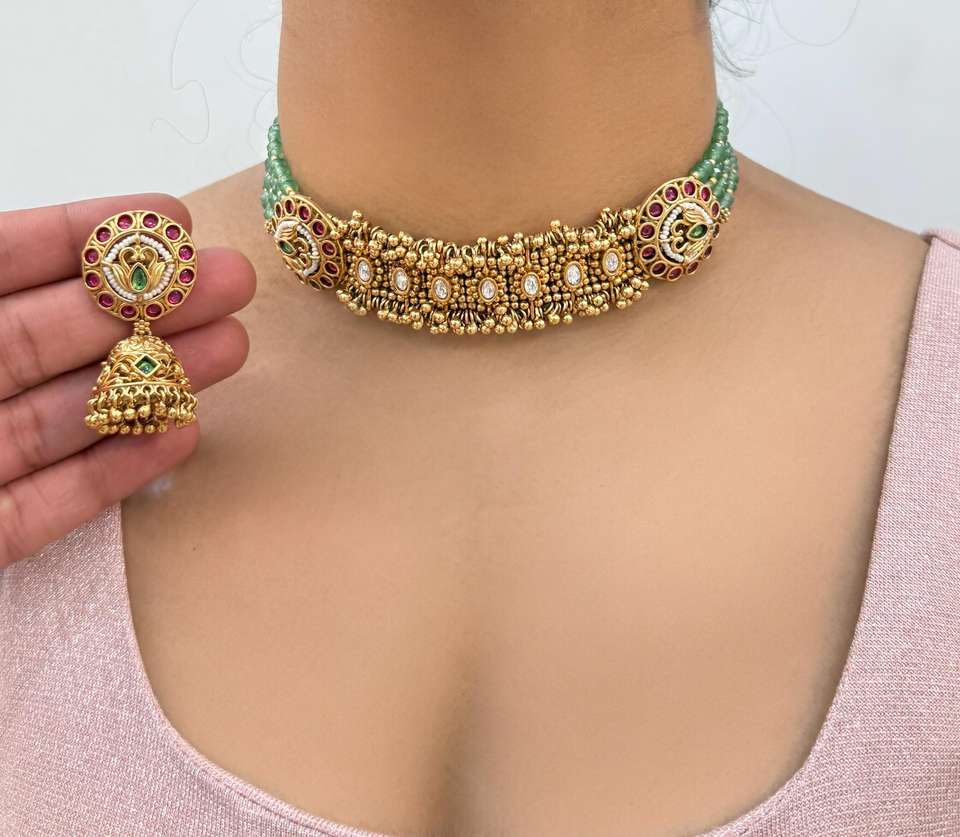 Luxury Royal Kundan Beaded Choker Set with Pearl Drops Gold Plated Perfect Wedding Anniversary Engagement Party Gift Idea