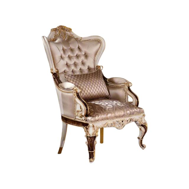 Luxury Royal Neoclassical Armchair with Gold-Leaf Hand-Carved Wood Frame and Premium Tufted Velvet Upholstery