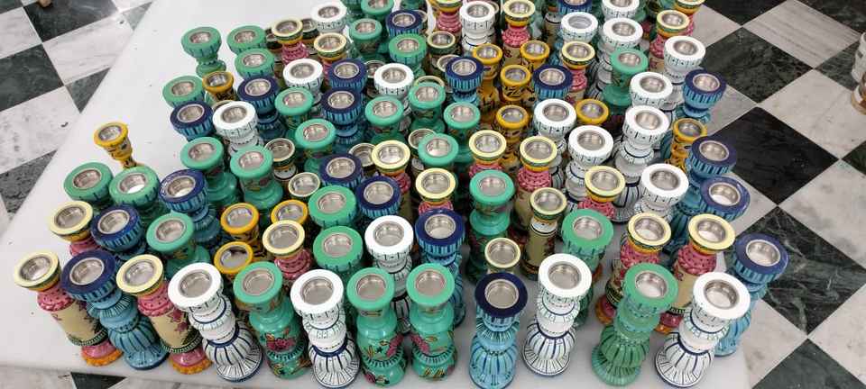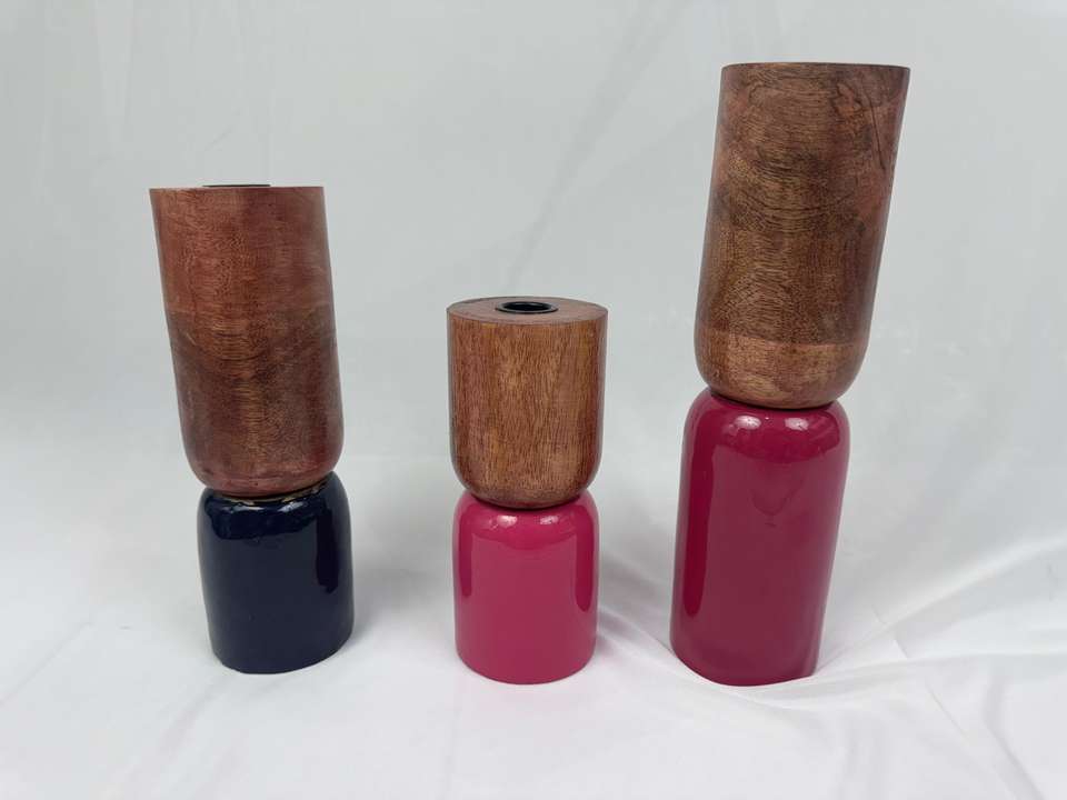 Luxury Rustic Antique Distressed Decorative Wooden Pillar Candle Holder Art Design Candle Holder for Home Decor from India