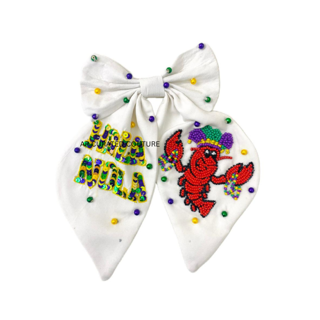 Luxury Sequin Beaded Bow Elegant Handmade Hair Clip Perfect for Mardi Gras Festival and Holiday Celebration