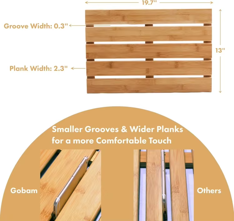 Luxury Shower Bathtub Mat Indoor Outdoor Floor Mat Non-Slip Natural Bamboo Bath Mat for Spa Sauna Pool