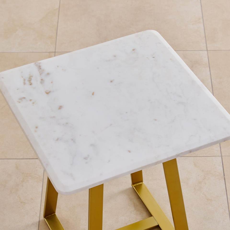 Luxury Side Table White Marble Square Display Coffee Table Hot Selling Gold Plated METAL TABLE Furniture For Home Decoration
