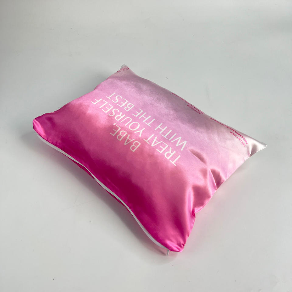 Luxury Silk Satin Zipper Bag Custom Logo Printed Cosmetics Pouch Bag Wig Packaging Satin Bags for Small Business