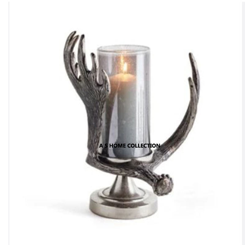 Luxury Silver Antler Design Metal Decorative High Demand Festival and Wedding Use Glass Candles Holders