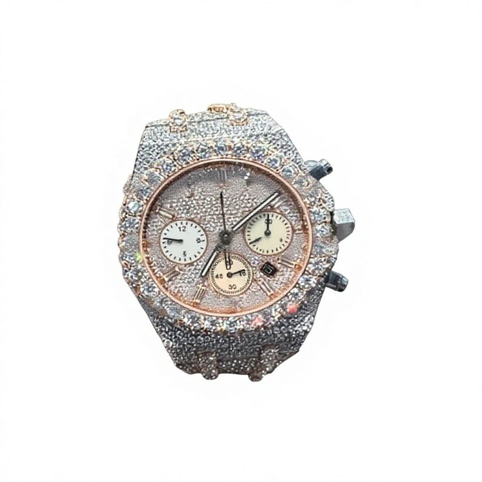 Luxury Silver Arabic Dial Glass Stainless Steel Handmade Moissanite Diamond Fully Iced 21.50CT Automatic Movement Men's Watch