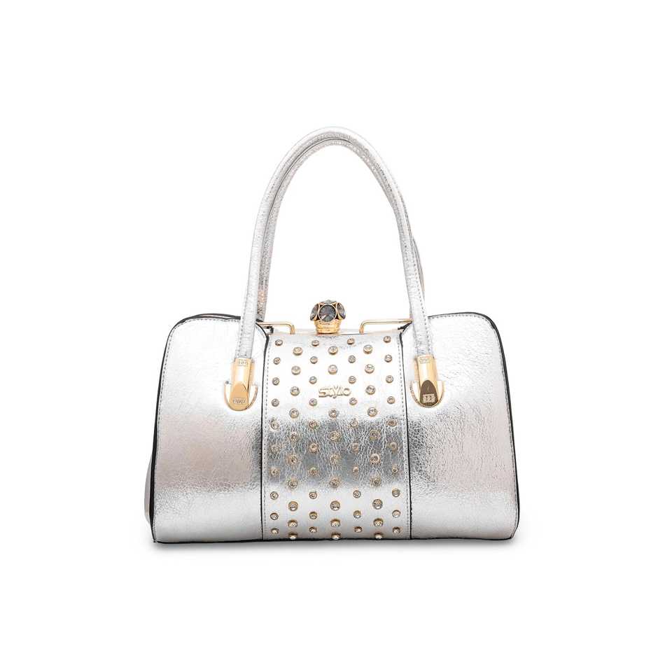 Luxury Silver Fancy Handbag P35832 Diamond Embellished Square Flap Wedding Party Bag Pearl Chains Sparkling Elegant Evening Bag