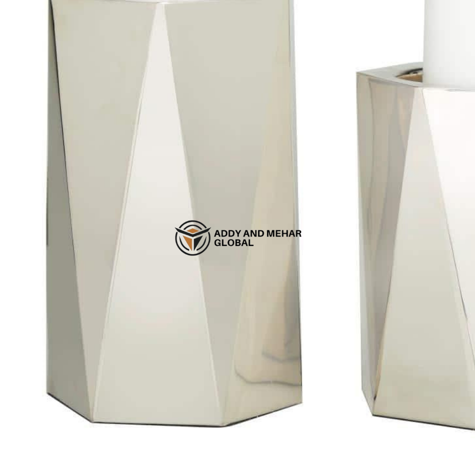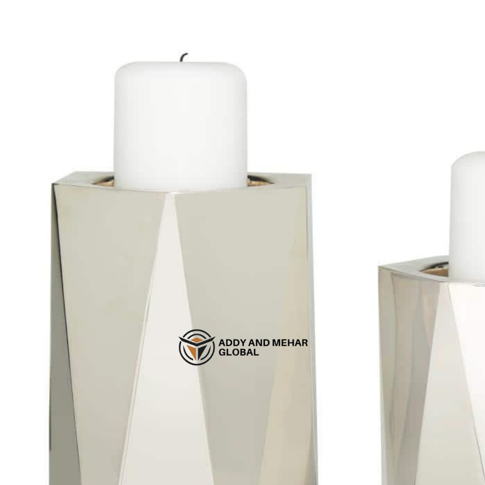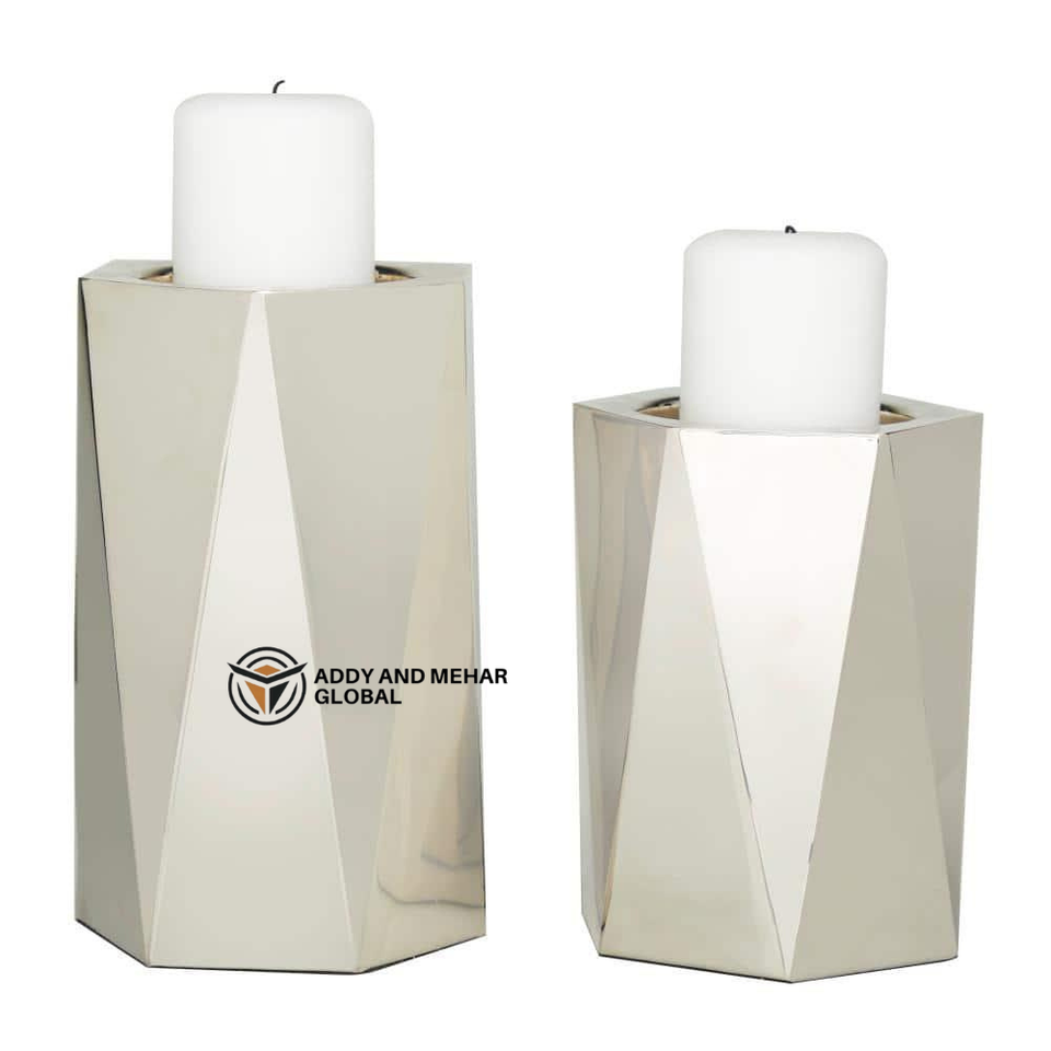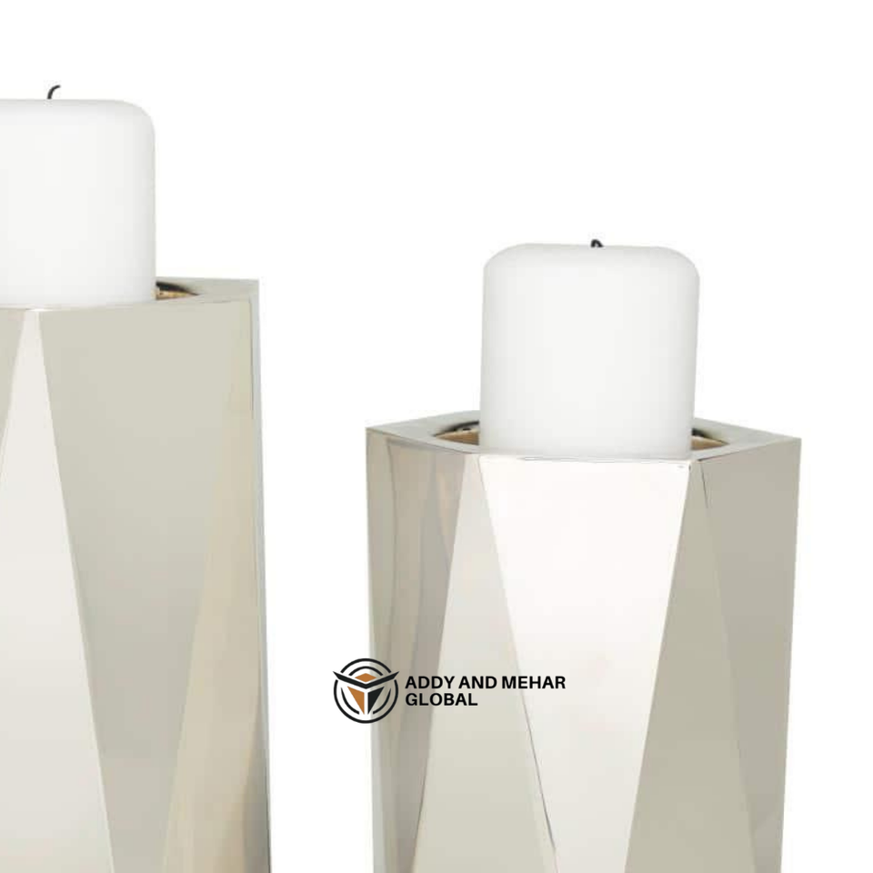 Luxury Silver Geometric Bone and Resin Handmade Eco-Friendly Pillar Candle Stand for Christmas Home Hotel & Event Decor