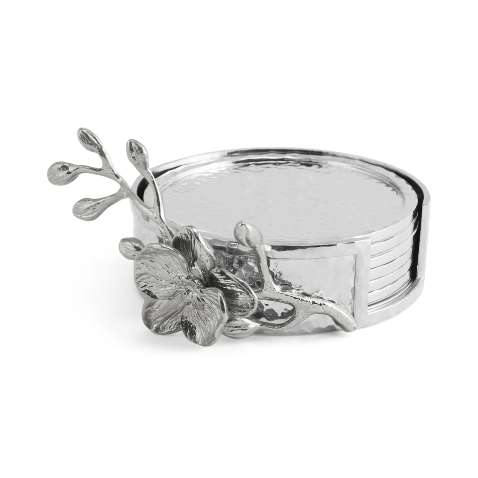 Luxury Silver Metal Coaster with Floral Design Elegant Drink Coaster for Home & Office Decor