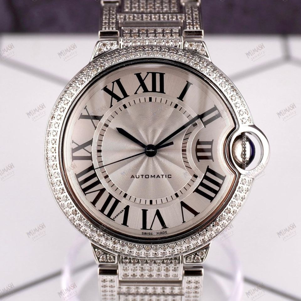 Luxury Silver Roman Numeral Automatic Watch with Diamond-Studded Bezel and Bracelet Timeless Elegance & Precision
