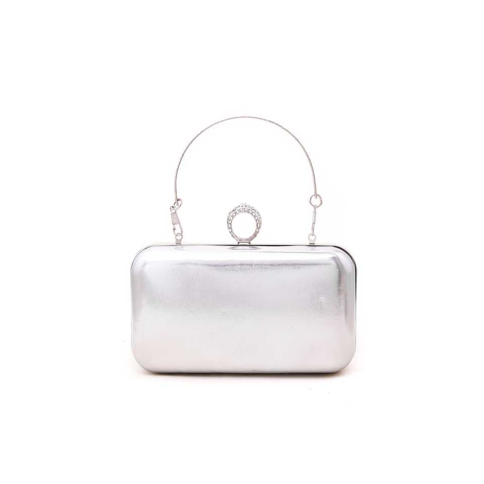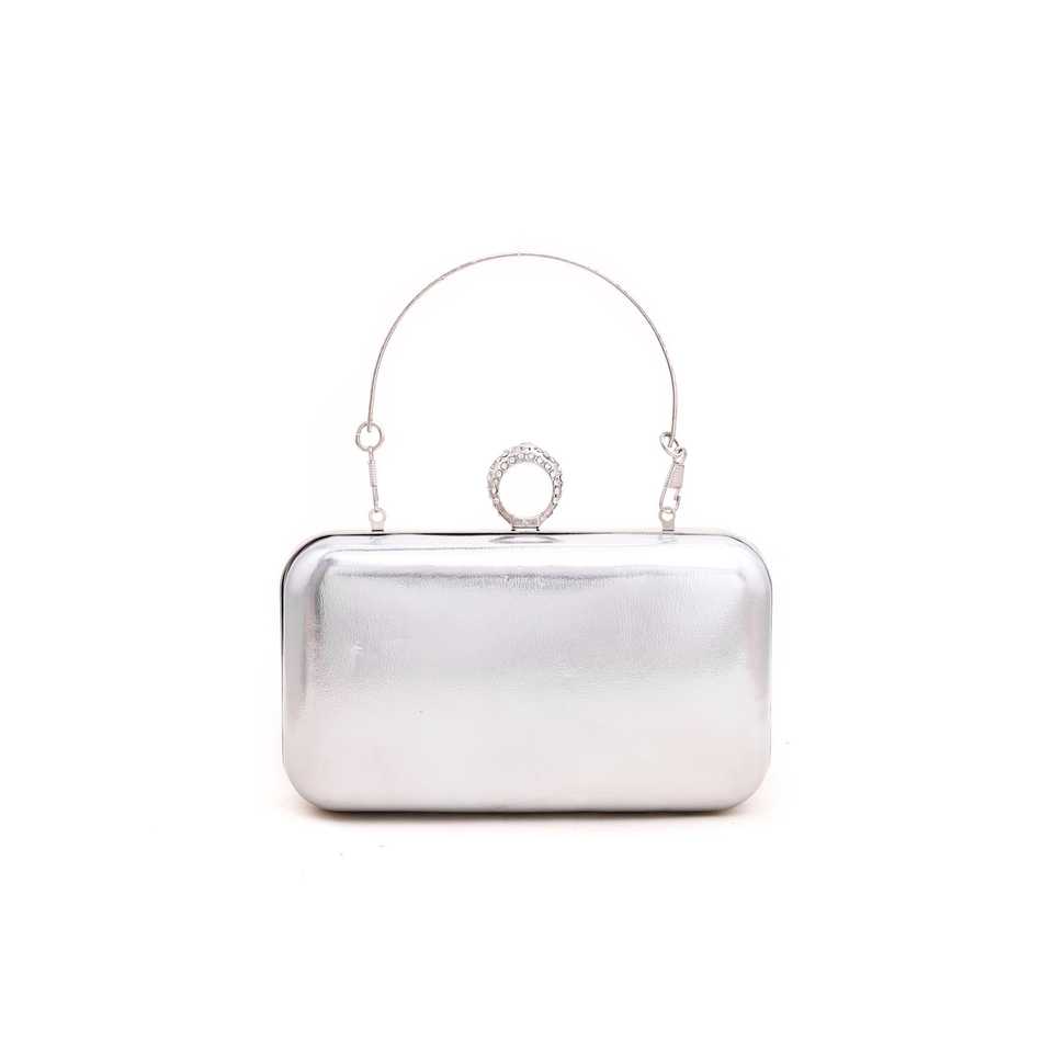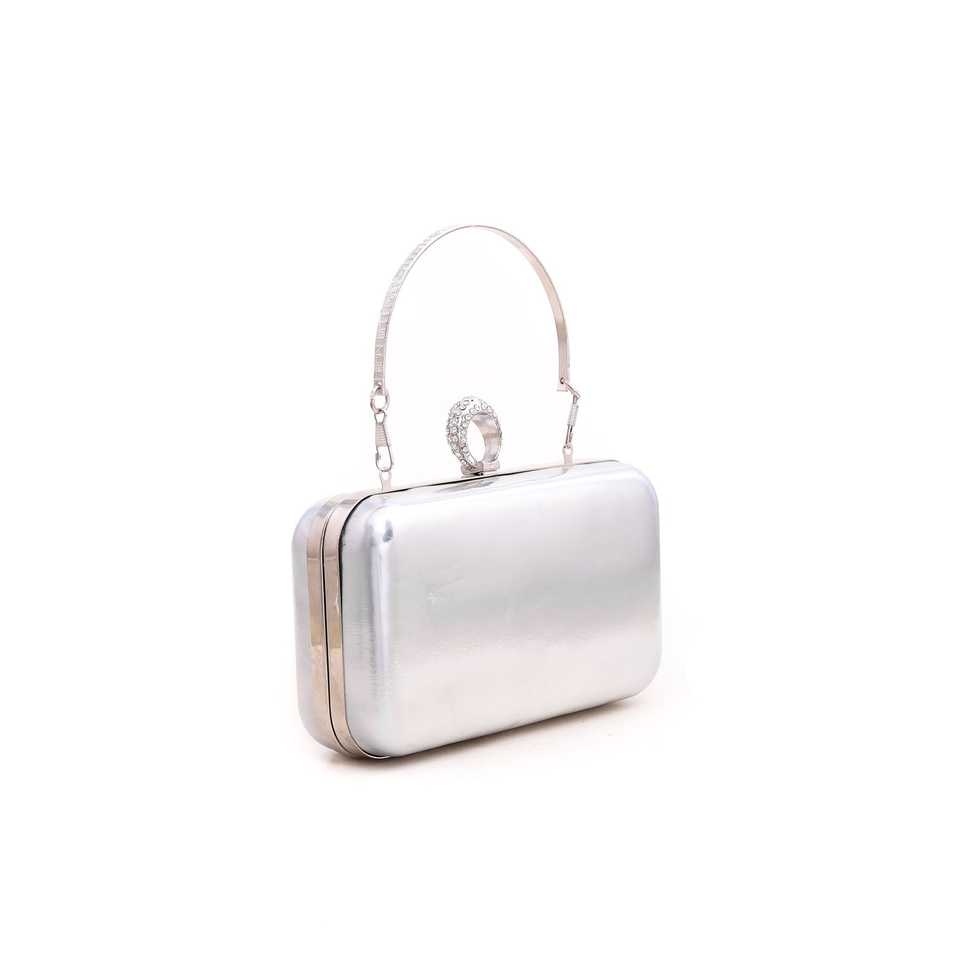 Luxury Silver Satin Bridal Clutch P15052 Evening Purse with Geometric and Stone Pattern Wedding and Party Bag