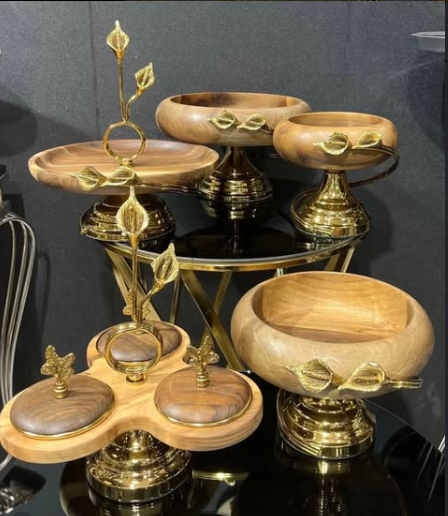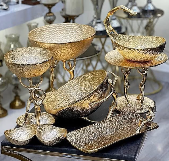 Luxury Silver and Gold Floral Pattern Metal Cake Stands Domes Bowls Trays Dishes & Boarder for Home Decoration
