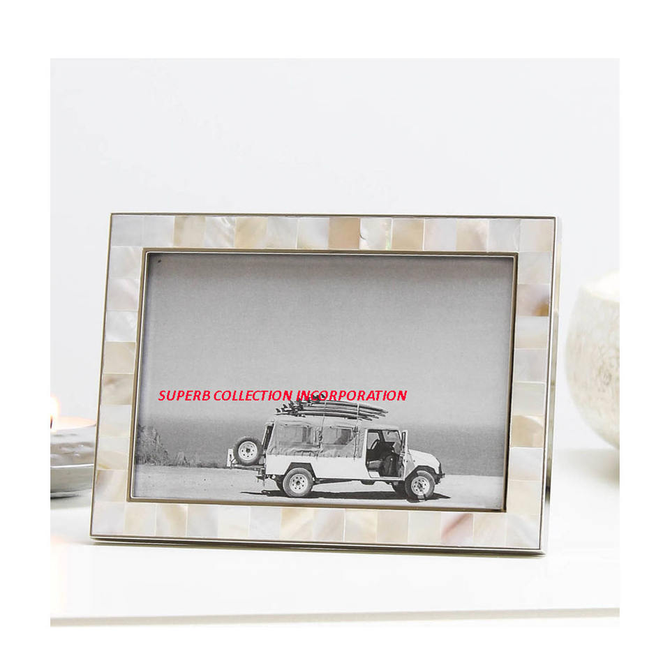 Luxury Rectangular Silver and Mother of Pearls Metal Photo Frame Handmade in India Direct Factory Sale