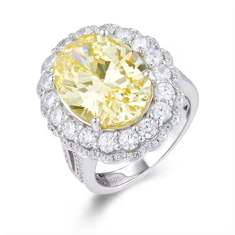 Luxury Sliver Ring with Yellow Cubic Zirconia Trendy Rose Gold & Rhodium Plating Women's Wedding Band