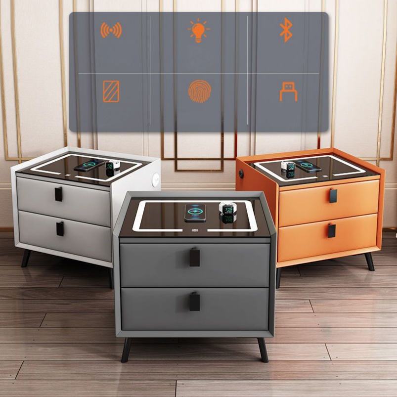 Description:Wireless USB Charging LED Lights 2 Drawer Storage Smart Nightstand