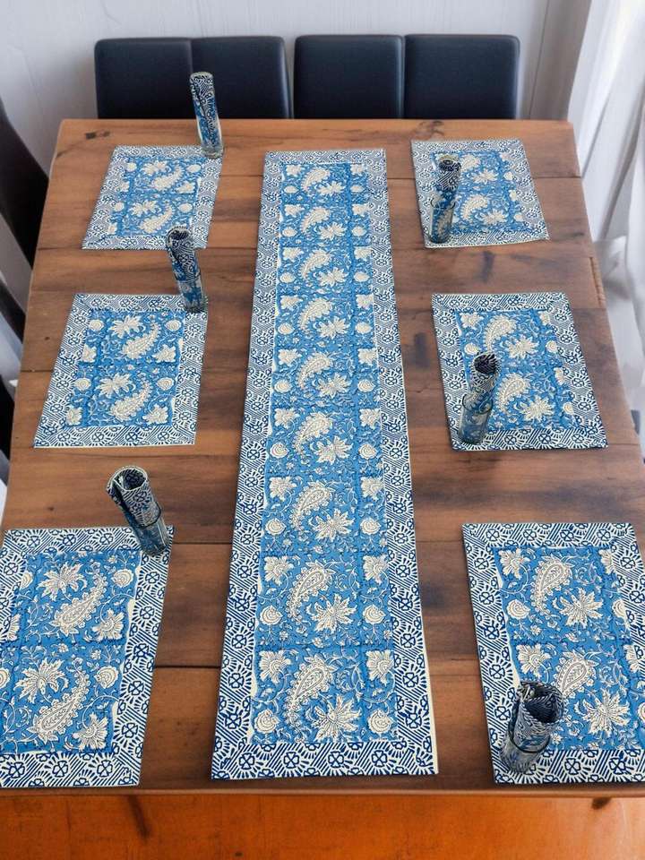 Luxury Soft Cotton Table Runner for 6-Seater Dining Table in Blue color