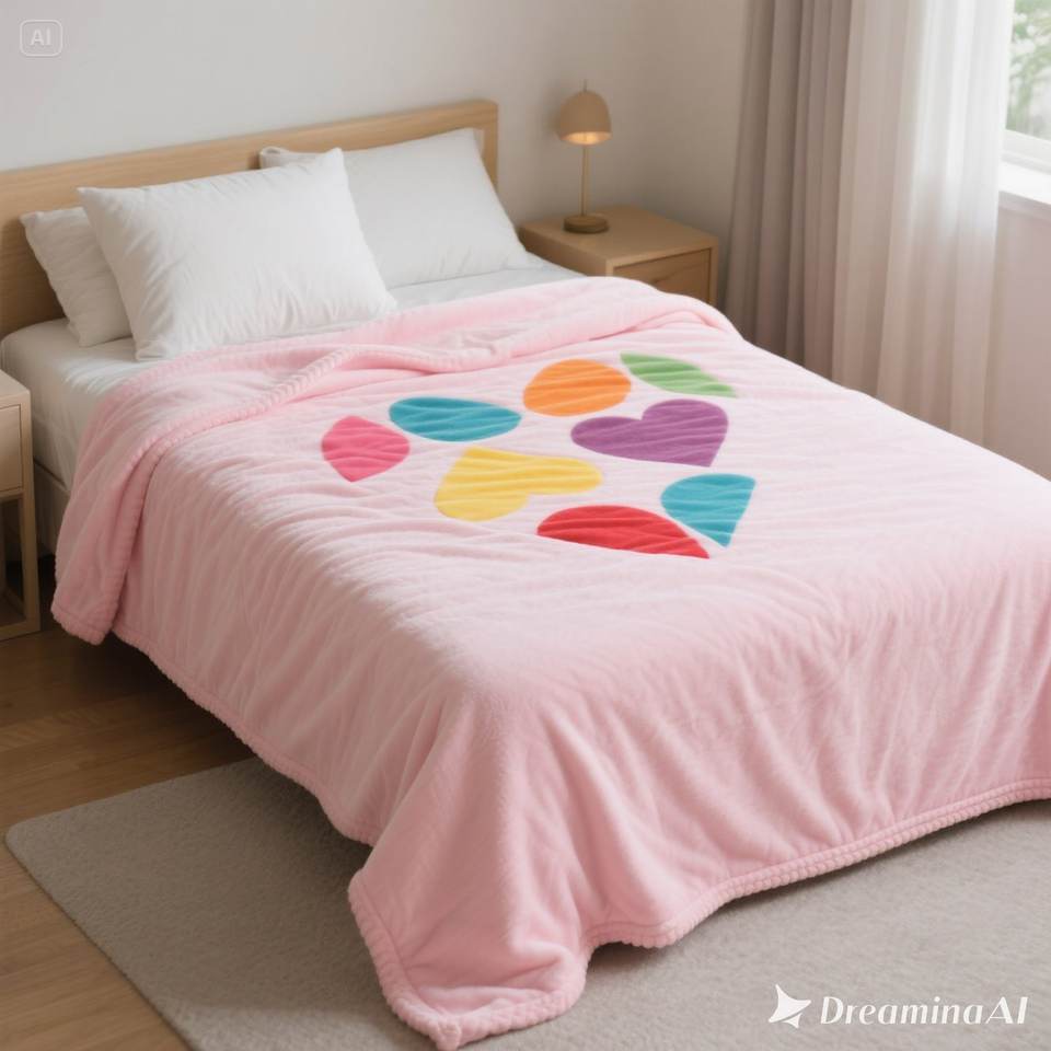 Luxury Soft Fleece Blanket Cozy Light Pink Heart Design Double Size