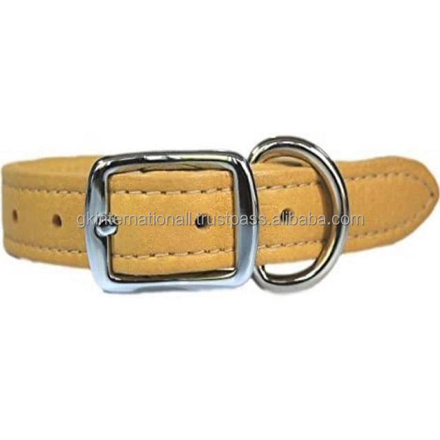Luxury Soft Mustard Yellow Leather Dog Collar Full Stitched Dog Pet Collar with Stainless Steel Buckle and D Ring All Sizes