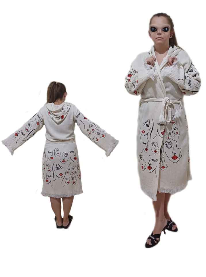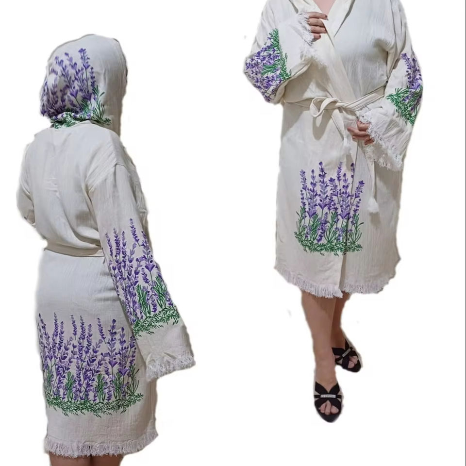 Luxury Soft Turkish Muslin Hooded Bathrobe Colourful Printing Women Men Kids Beach Towel Spa Bathroom Home Hotel Quick Drying