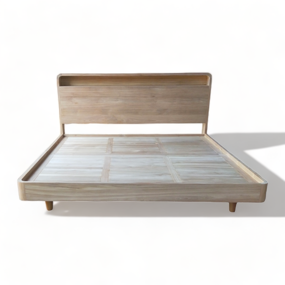 Product name:Minimalist Floating Light Teak Wood Bed in Queen Size