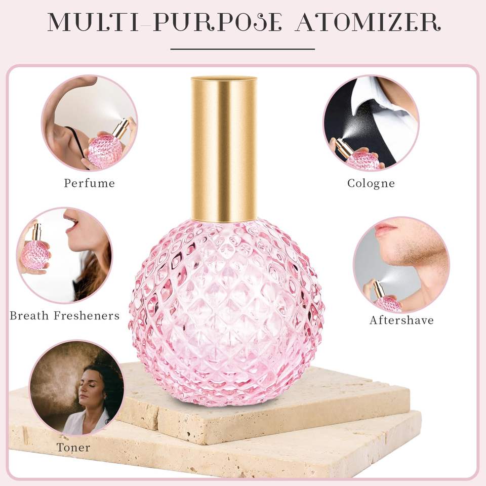Luxury Spherical Perfume Bottle 100ml Glass Dispenser Pump Sprayer Refillable Travel Pink Perfume