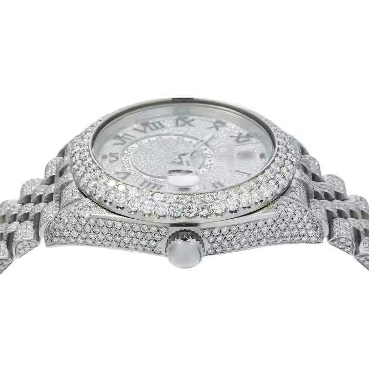 Luxury Sport Mechanical Analog Stainless Steel Watch Dual Time Display Moissanite Diamond High Quality Glass Case Fashionable