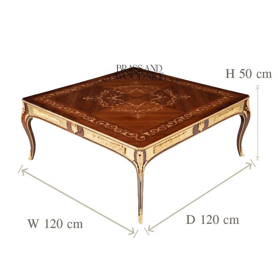 Luxury Square Coffee Table with Handcrafted Marquetry Inlays and Golden Brass Detailing for Elegant Living Rooms