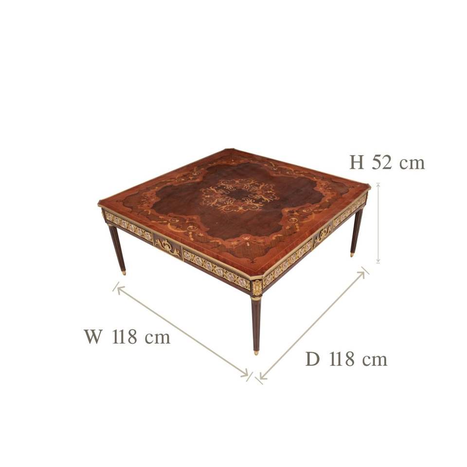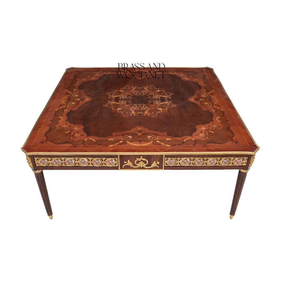 Luxury Square Coffee Table with Intricate Wood Inlays and Brass Detailing for Elegant and Timeless Living Room Decor