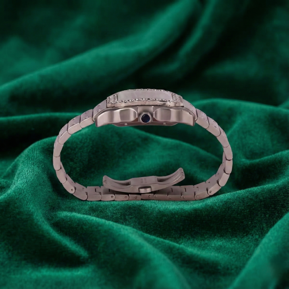 Luxury Square Moissanite Iced Watch Stainless Steel Blue Dial Date Sapphire Glass Waterproof Dress T*mep*ece