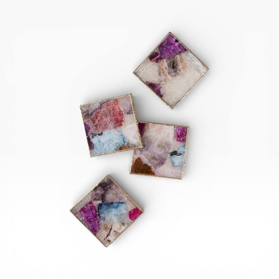 Luxury Square Multicolor Gemstone Coasters with Gold Trim for Modern Home and Table Decor