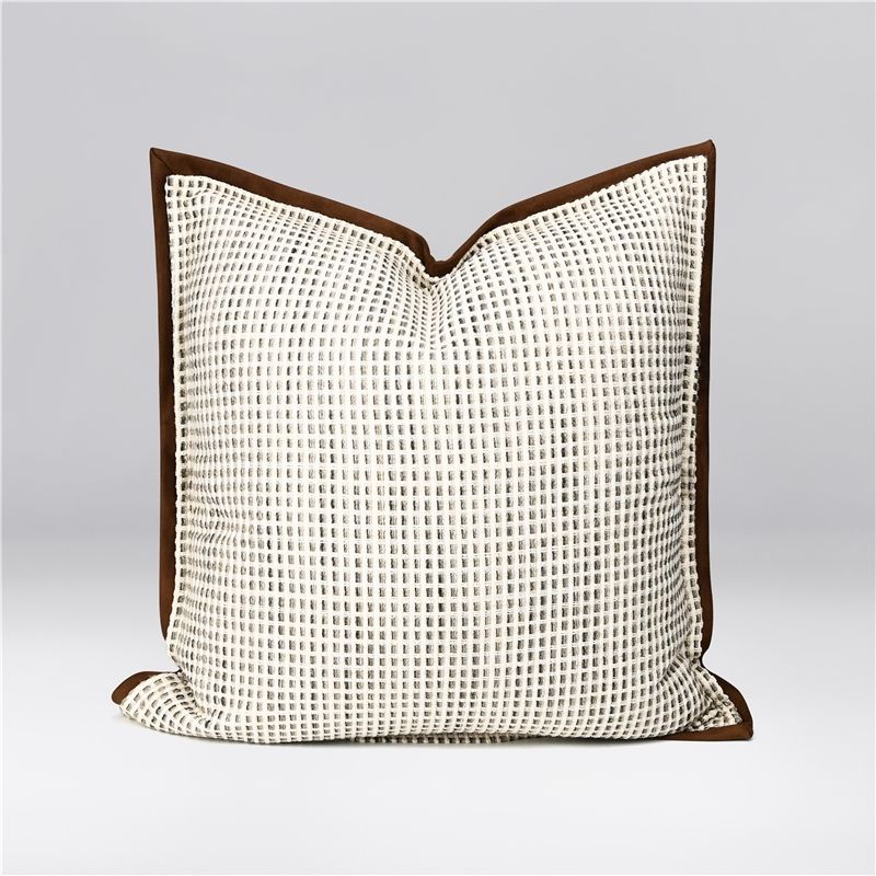 Luxury Square Pillow White Grid Texture Dark Brown Border Stitched Technique for Villa Model Room Living Room Bedside Decor