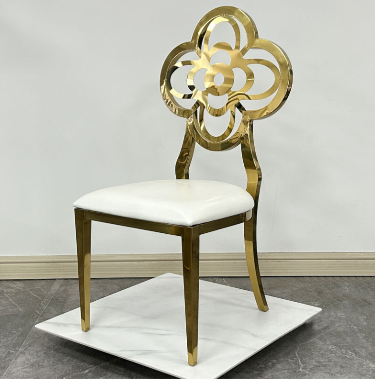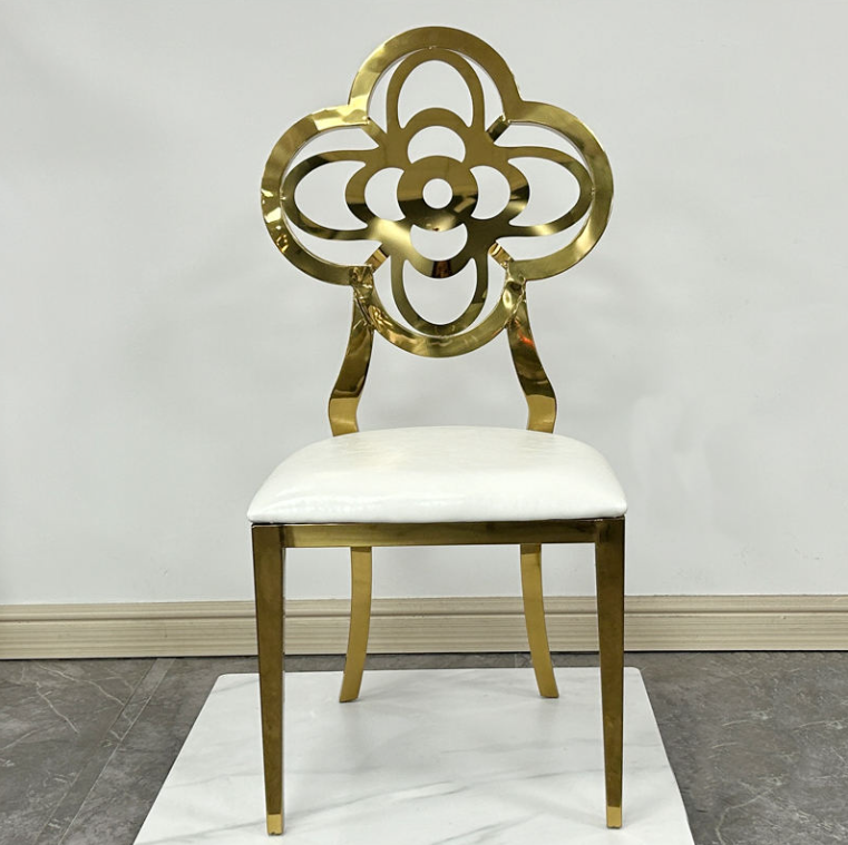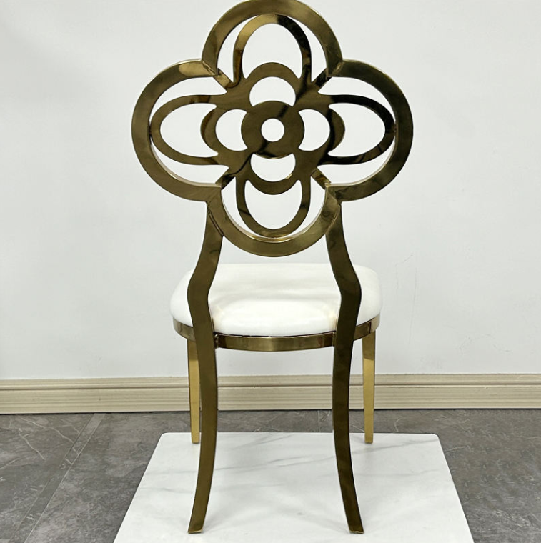 Luxury Stackable Silver Stainless Steel Social Elegant Metal Chairs With Flower Back Design for Wedding