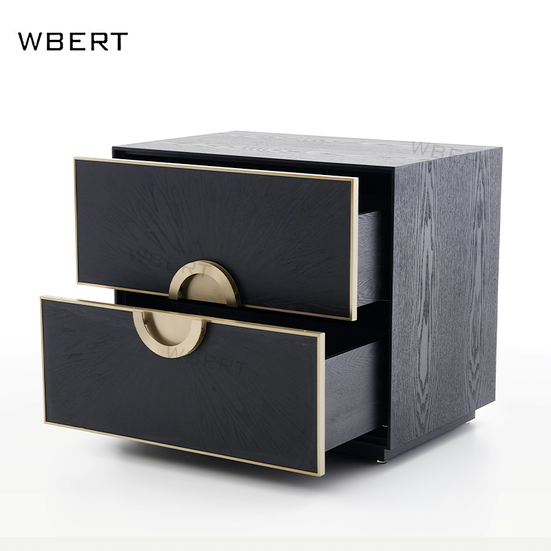 Luxury Stainless Gold Frame Natural Wooden Modern Table Nightstand Corner Table with Drawers Bedside Cabinet for Bedroom