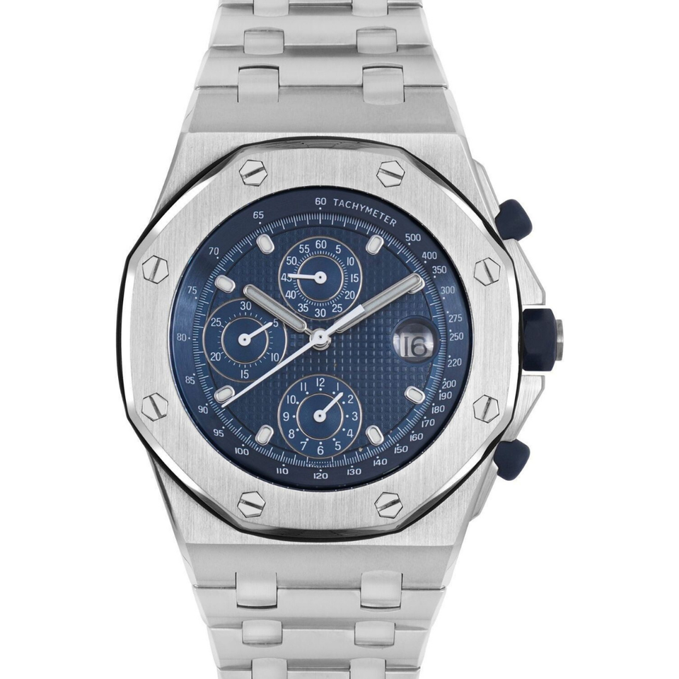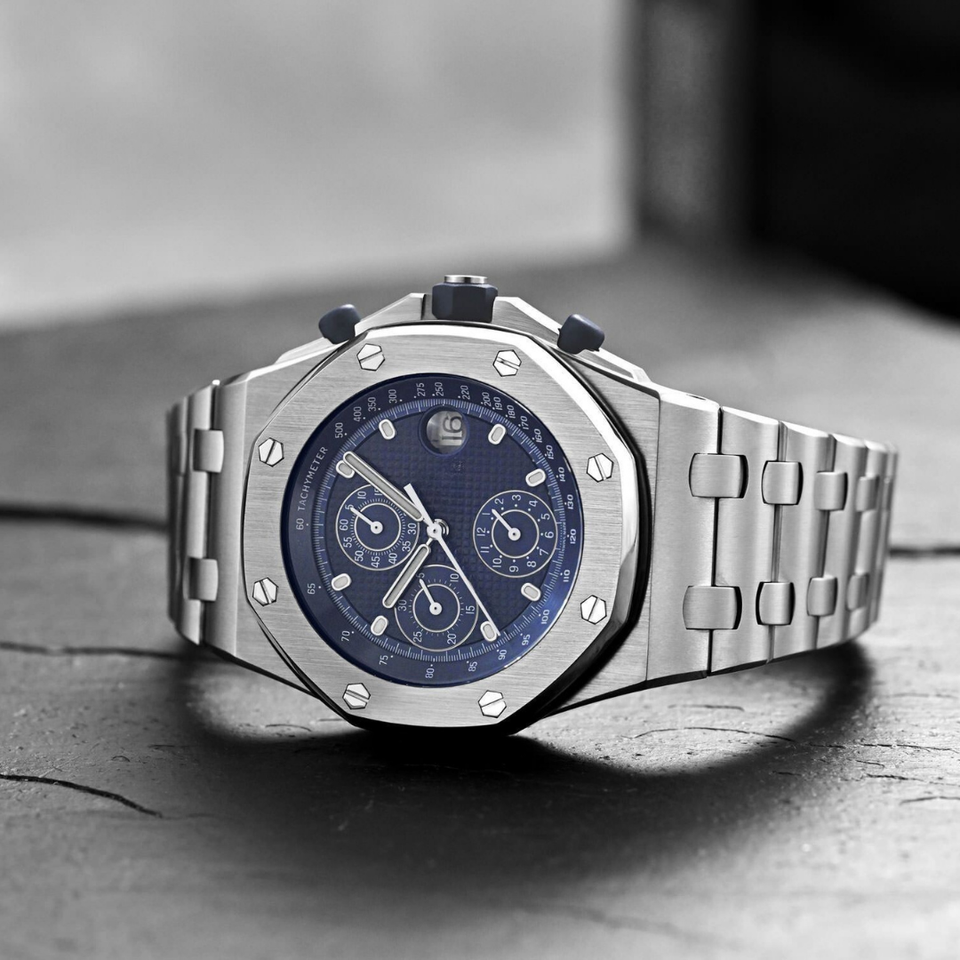 Luxury Stainless Steel Chronograph Watch for Men Blue Dial Waterproof Quartz Wristwatch Business Casual Fashion Gift