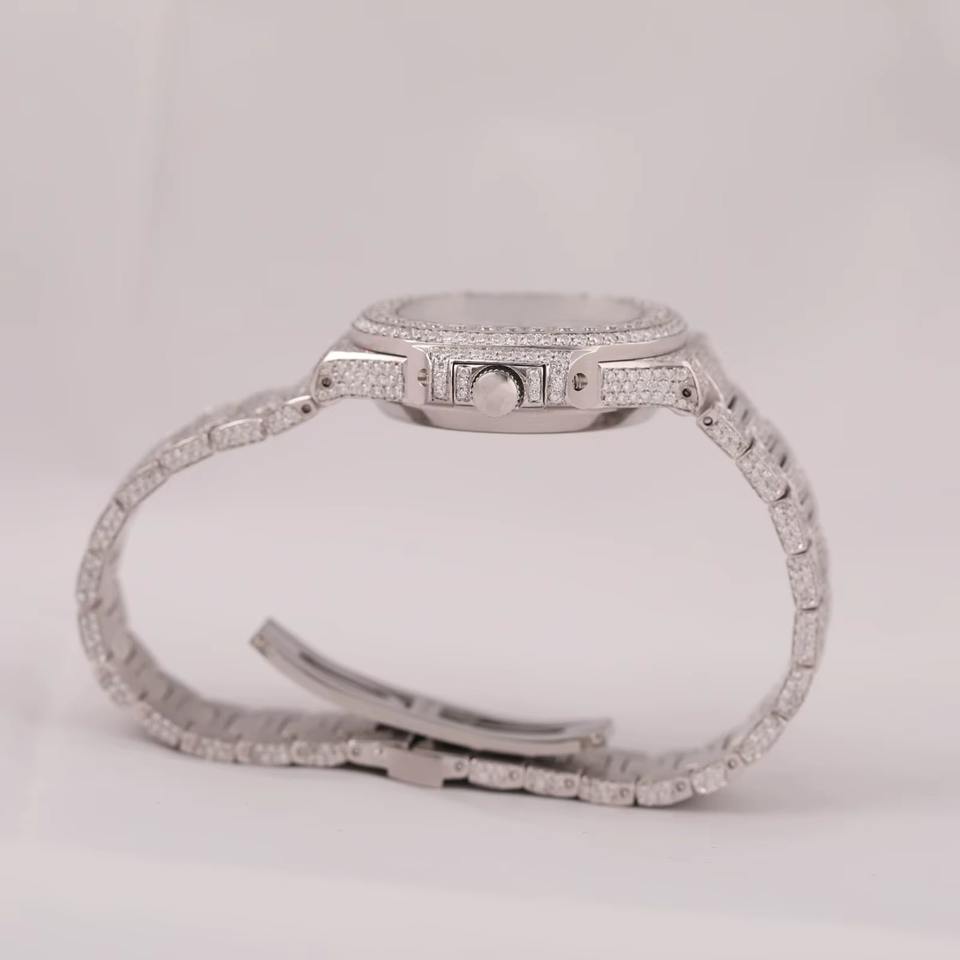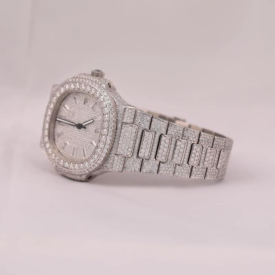Luxury Stainless Steel Fully Iced Out Moissanite Round Diamond Round Dial Hip Hop Style Iced Watch For Men Women India