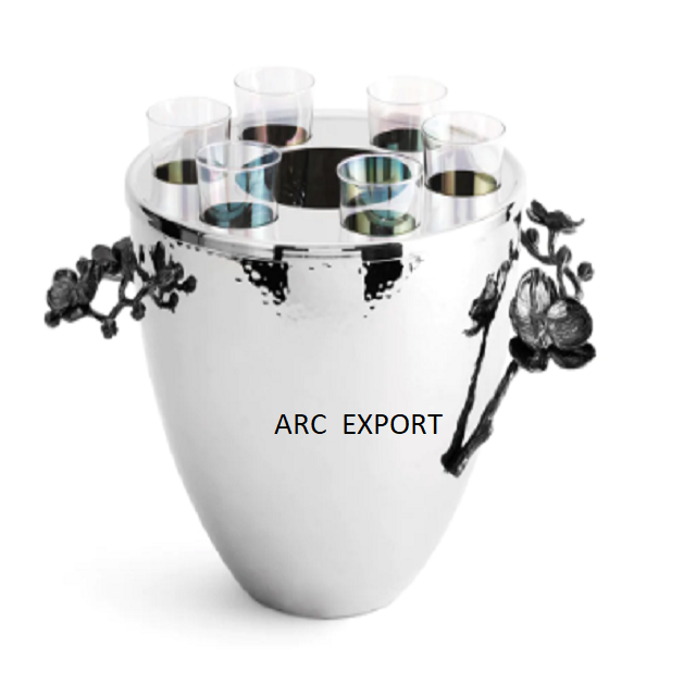 Creative Stainless Steel Hammered Round Silver Color Metal Flower Vases Pots With Leaf Ware Modern Flower Vase for Gifting Use