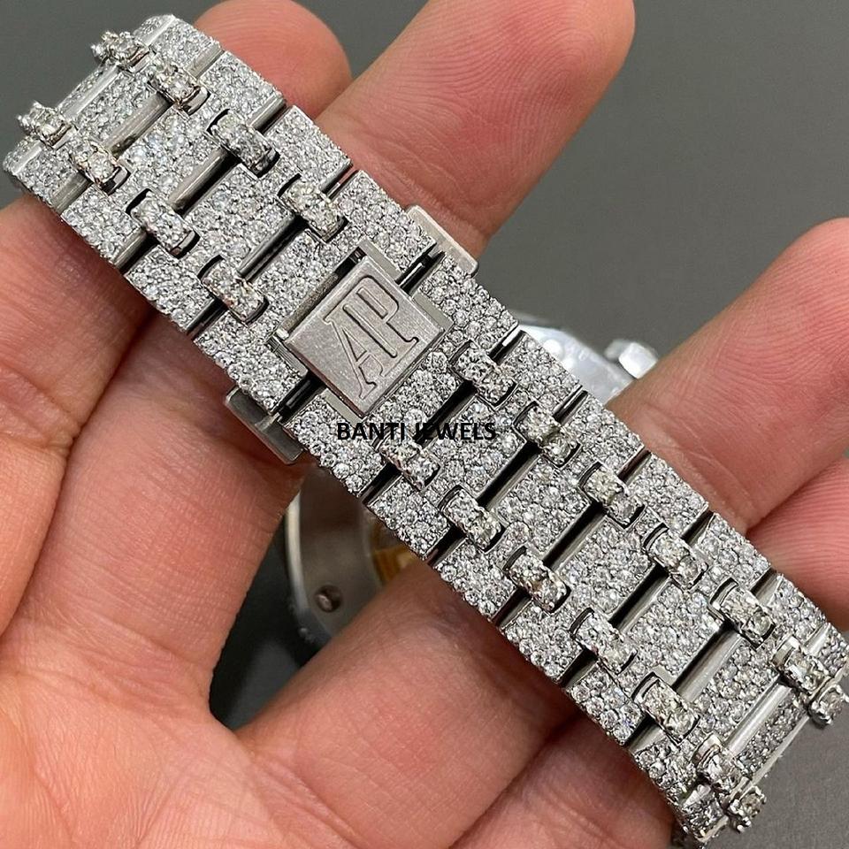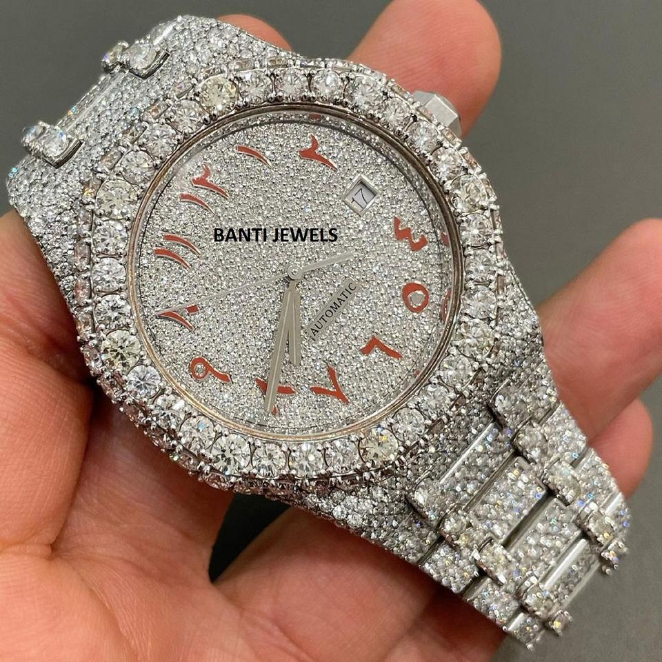 Luxury Stainless Steel Iced Moissanite Automatic Watch Glass Dial Bezel 20mm Band Eco-Friendly Hip Hop Statement Timepiece