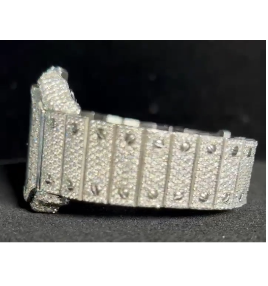 Luxury Stainless Steel Quartz Moissanite Diamond Watch for Men VVS Sparkling Stones Bold Sophisticated Design High Fashion