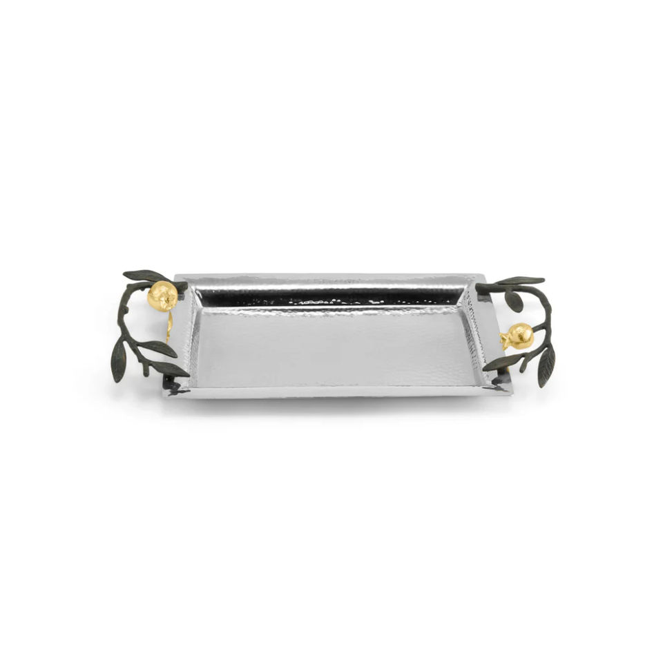 Luxury Stainless Steel Serving Tray With Decorative Leaf Handles Metal Rectangular Tableware Home Hotel Kitchen Display Tray