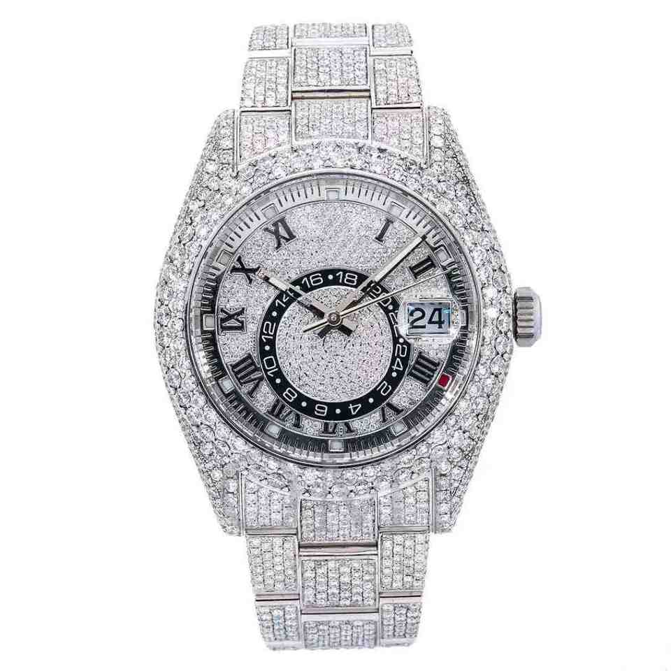 Luxury Stainless Steel Watch Full Iced VVS Moissanite Diamond High Quality Hand Setting Pass Tester Premium Craftsmanship