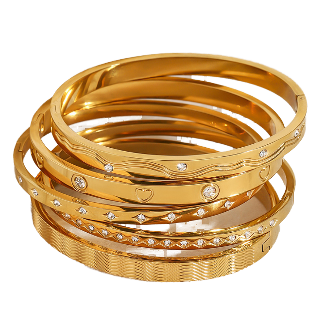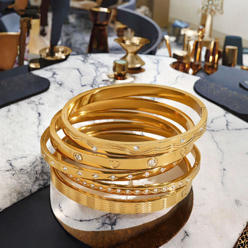 Luxury Stainless Steel Zircon Moon Bangle 18K Gold Plated Vintage Women's Jewelry with Claw Setting Gift