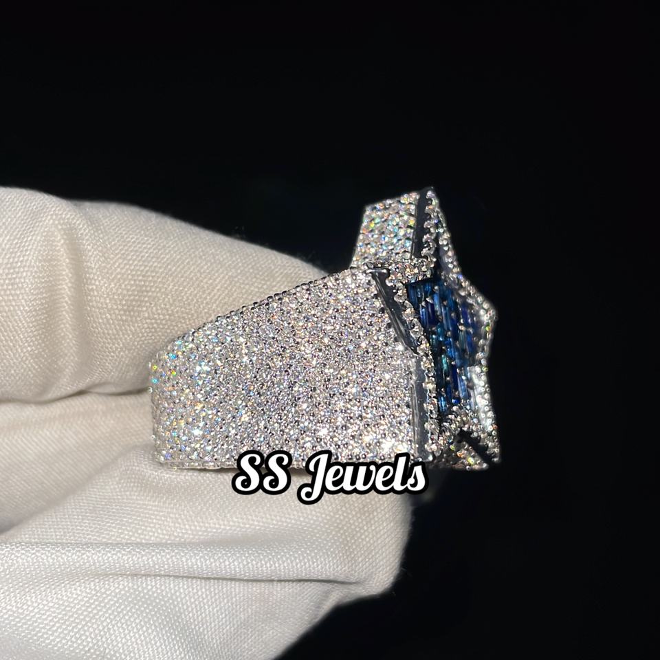 Luxury Star Ring Lab Grown Diamonds VVS Custom Iced Hip Hop Statement 925 Sterling Silver Gold Plated Baguette Cut for Men Women